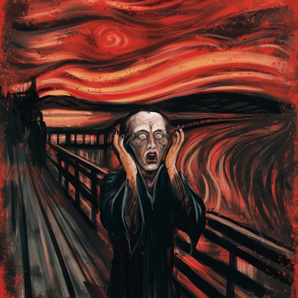 Dzisiejsze zajęcia języka polskiego w klasie 4tan zamieniliśmy w zajęcia z obrazem E. Muncha „Krzyk”. Wykorzystaliśmy znany motyw, aby wcielić się w obraz-przebranie oraz aplikacja Art Selfie. Tworzyliśmy obrazy inspirowane słynnym obrazem w generatorach obrazów AI. Oceńcie efekty.