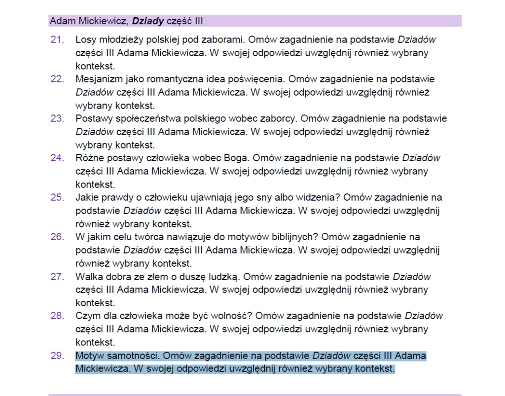 3. Pytania jawne – matura z języka polskiego część ustna. Pytania obowiązują w latach 2026-208.