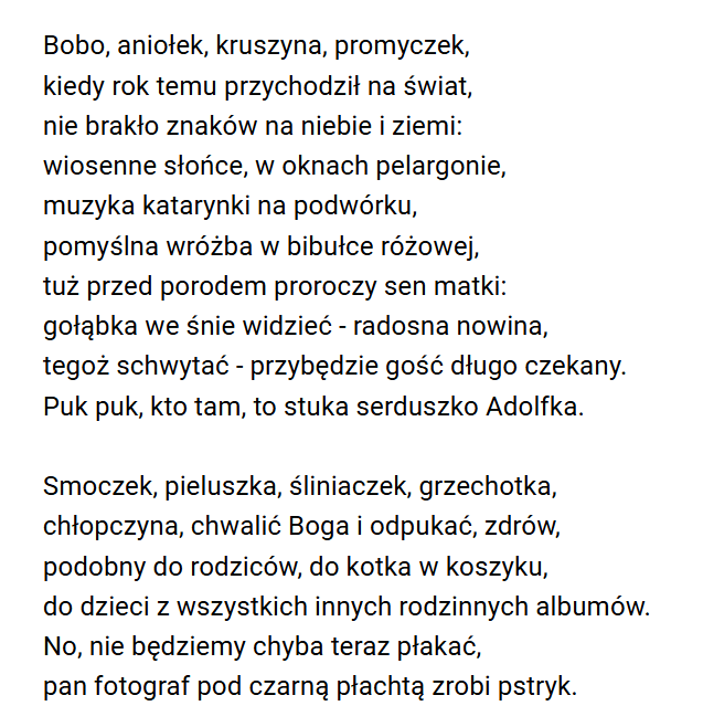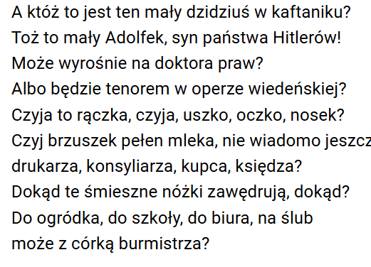 Jak poezja, wykorzystując motyw dzieciństwa i ironię, podejmuje refleksję nad genezą i nieuchronnością zła? Omów zagadnienie na podstawie wiersza „Pierwsza fotografia Hitlera” Wisławy Szymborskiej. W swojej odpowiedzi uwzględnij wybrany kontekst.