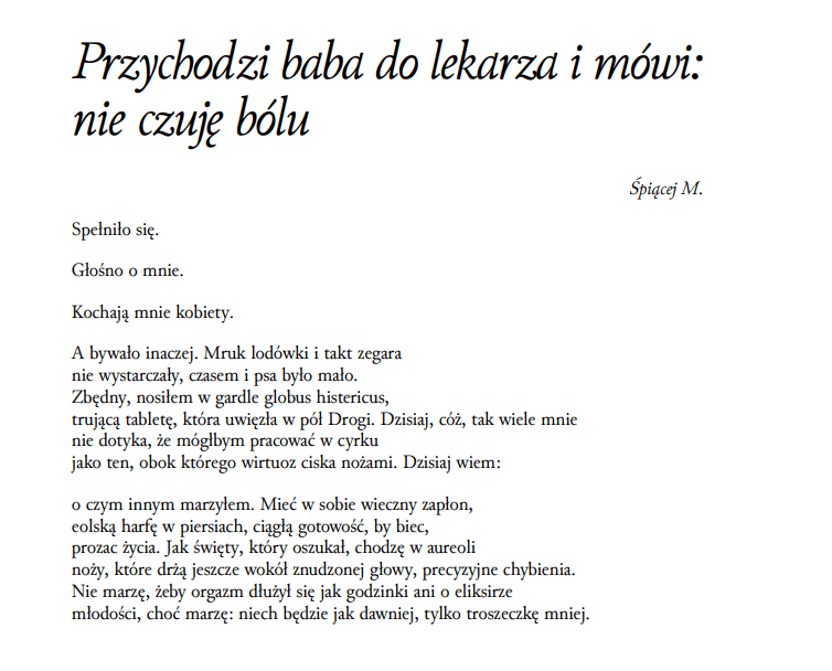 „Przychodzi baba do lekarza i mówi: nie czuję bólu” Jacka Podsiadły