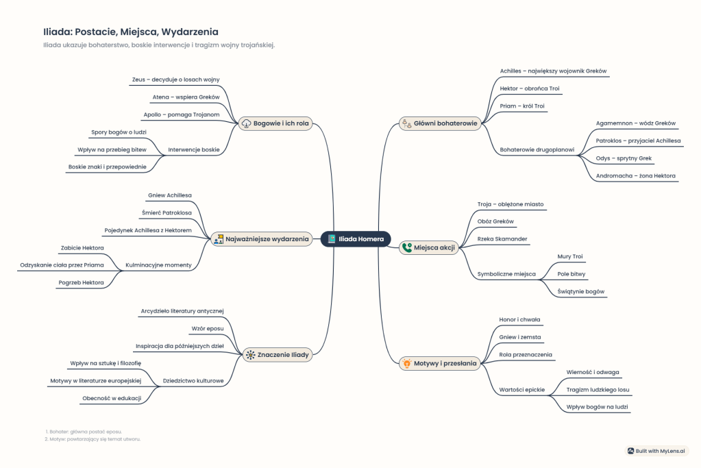 | Porównania homeryckie | Dłuższe, gotowe bloki tekstu, które pozwalały śpiewakowi na chwilę oddechu i zaplanowanie dalszego ciągu akcji. |