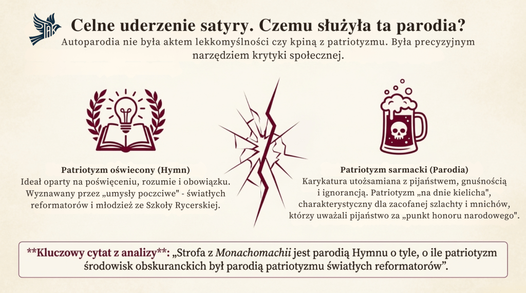 To właśnie dzięki mistrzowskiemu połączeniu bezpośredniej apostrofy, rytmicznej anafory i wstrząsających oksymoronów, Krasicki tworzy dekalog patrioty, którego przesłanie jest równie potężne, co bezkompromisowe.