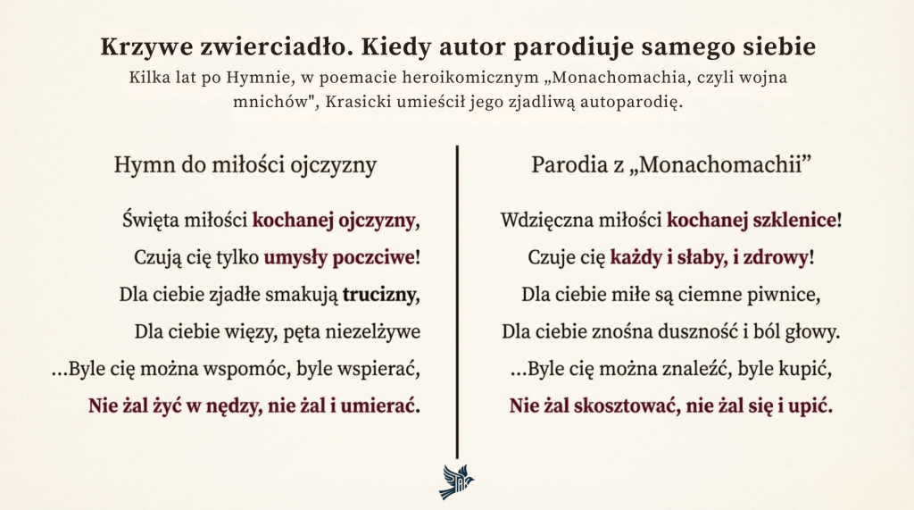 Ciekawostka: Autoparodia mistrza Niewielu twórców odważyłoby się sparodiować własne, poważne dzieło. Ignacy Krasicki to zrobił!