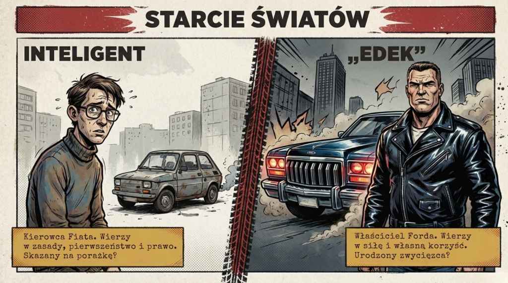 | Kierowca Fiata („Inteligent”) | Kierowca Forda („Edek”) |
