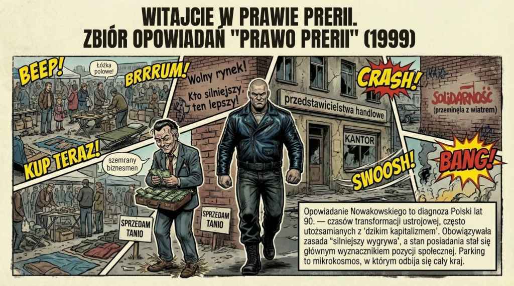 Geniusz Nowakowskiego, a zarazem ostateczna tragedia, którą demaskuje, polega na mistrzowskim zastosowaniu „małego realizmu”. Dowodzi on, że dusza narodu objawia się nie w wielkich politycznych deklaracjach, lecz w brutalnym mikrokosmosie sporu o miejsce parkingowe. To właśnie ta walka staje się prawdziwym „raportem o stanie” Polski lat 90., stanowiąc uniwersalną i mroczną przestrogę przed społecznymi kosztami transformacji pozbawionej moralnego kompasu.