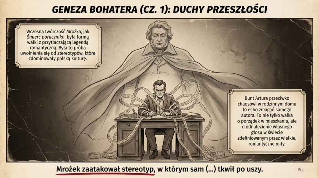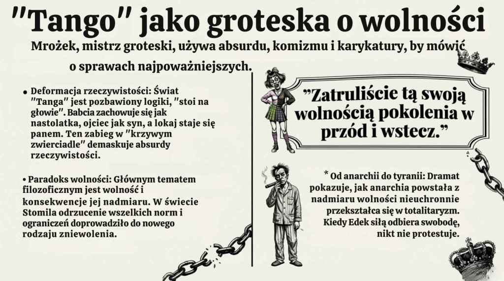 Zrozumienie, jak Mrożek mistrzowsko posługuje się groteską i parodią, pozwala odczytać jego dzieła nie tylko jako błyskotliwą komedię, ale przede wszystkim jako przenikliwą i wciąż aktualną lekcję na temat pułapek wolności, władzy i historii.