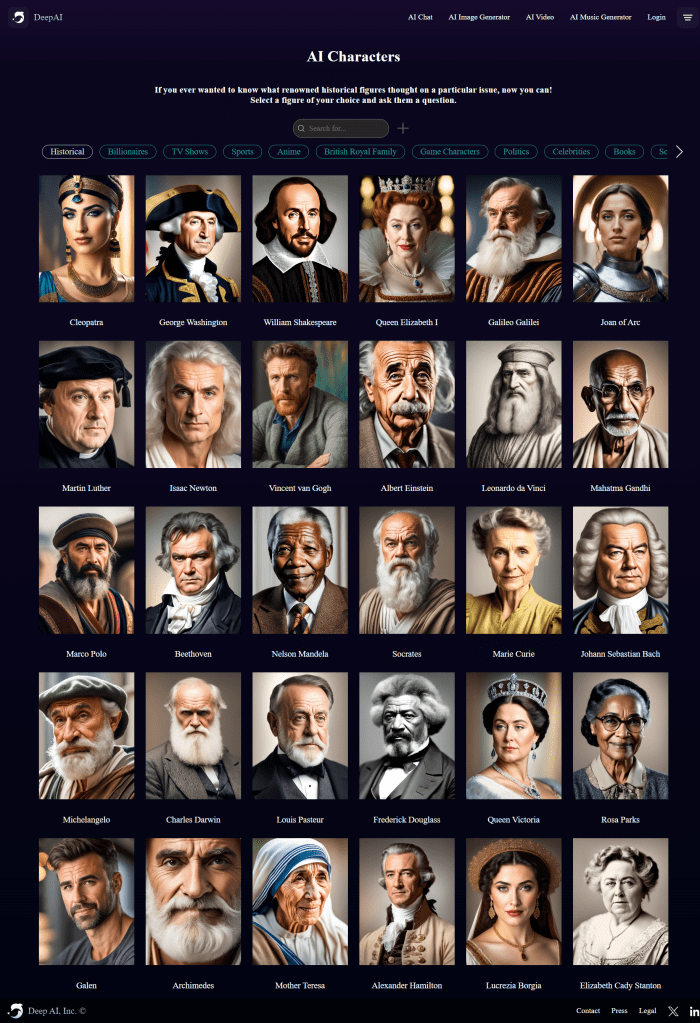 Strona ta oferuje rozmowę ze znanymi postaciami historycznymi, w tym znanymi pisarzami, które zaskakująco dużo „wiedzą” na temat swojego życiorysu i swojej twórczości.